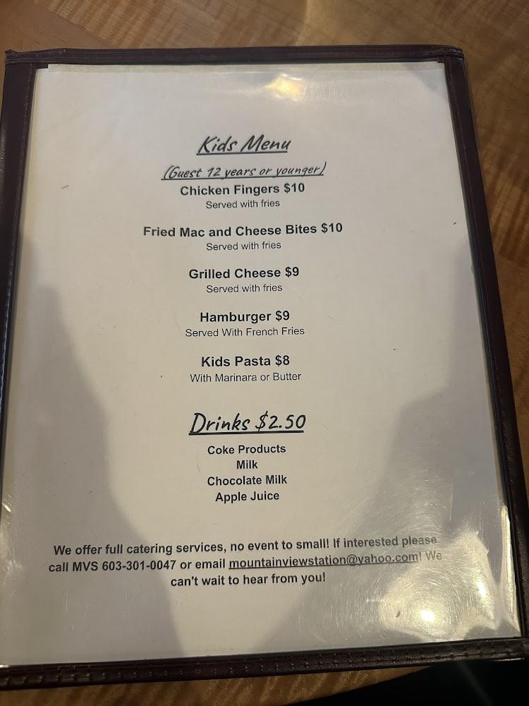 Discover MountainView Station, a charming American restaurant nestled at 79 Main St, Center Ossipee, NH. Enjoy a relaxed atmosphere with a historical touch, perfect for families, groups, and solo diners alike. Savor our diverse menu featuring local specialties, delicious sandwiches, and an excellent selection of desserts and teas. With options for outdoor seating, takeout, and delivery, we cater to every need. Our accessible facilities ensure everyone can enjoy a meal with us. Whether you’re stopping by for a quick lunch or a leisurely dinner, MountainView Station offers a delightful experience at an affordable price.